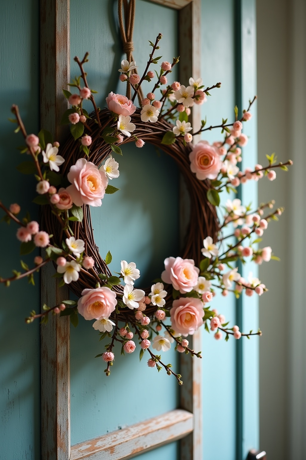 ## Natürliche Kranzideen mit Frühlingszweigen für Tür und Wand