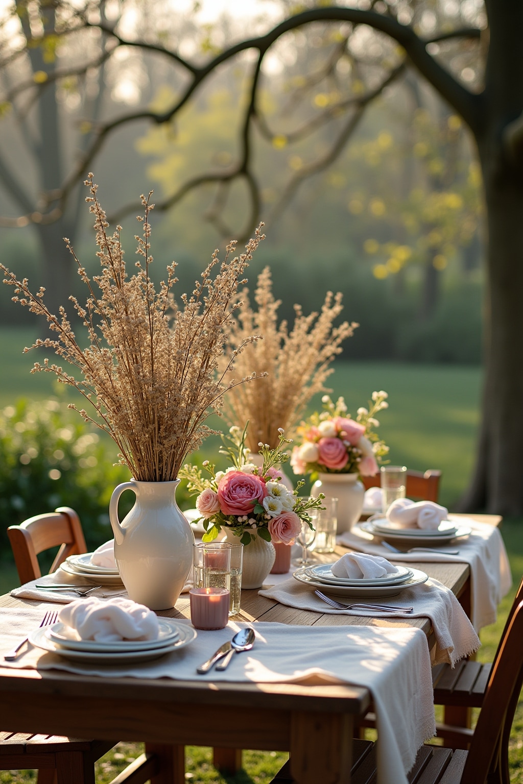12. Blütenzweige mit Trockenblumen kombiniert für einen Boho-Look