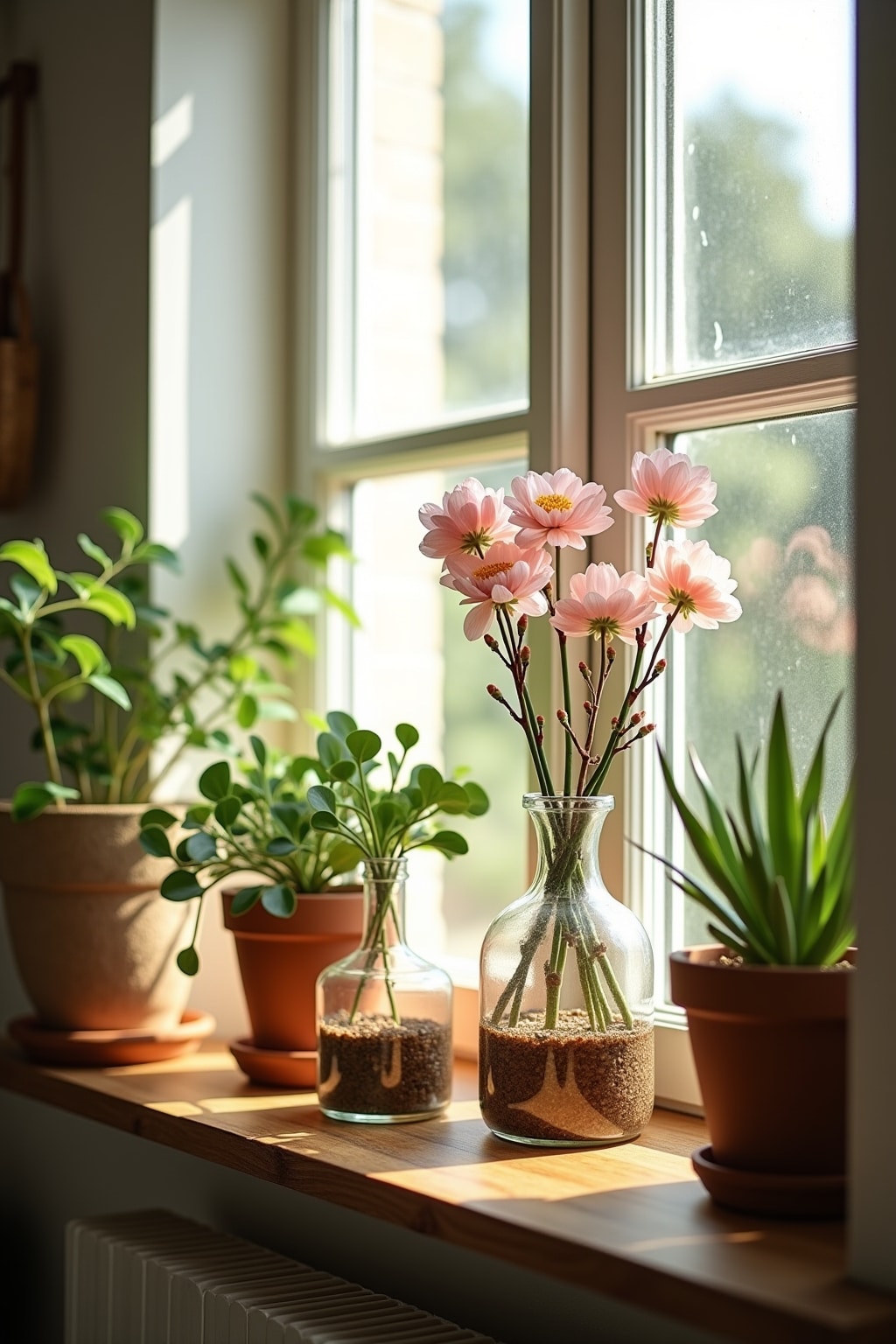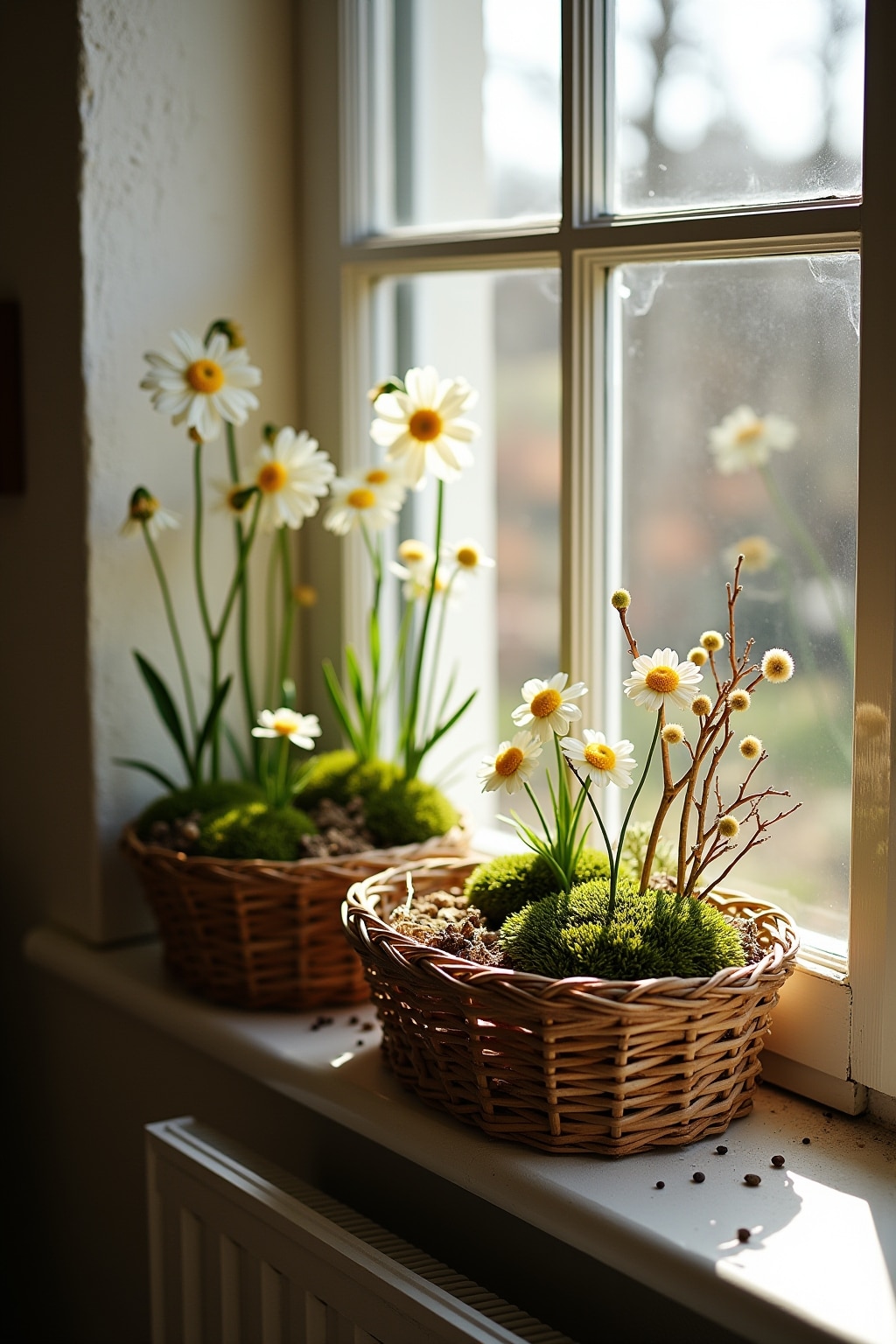 Die Fensterbank als Bühne für natürliche Frühlingsdekoration