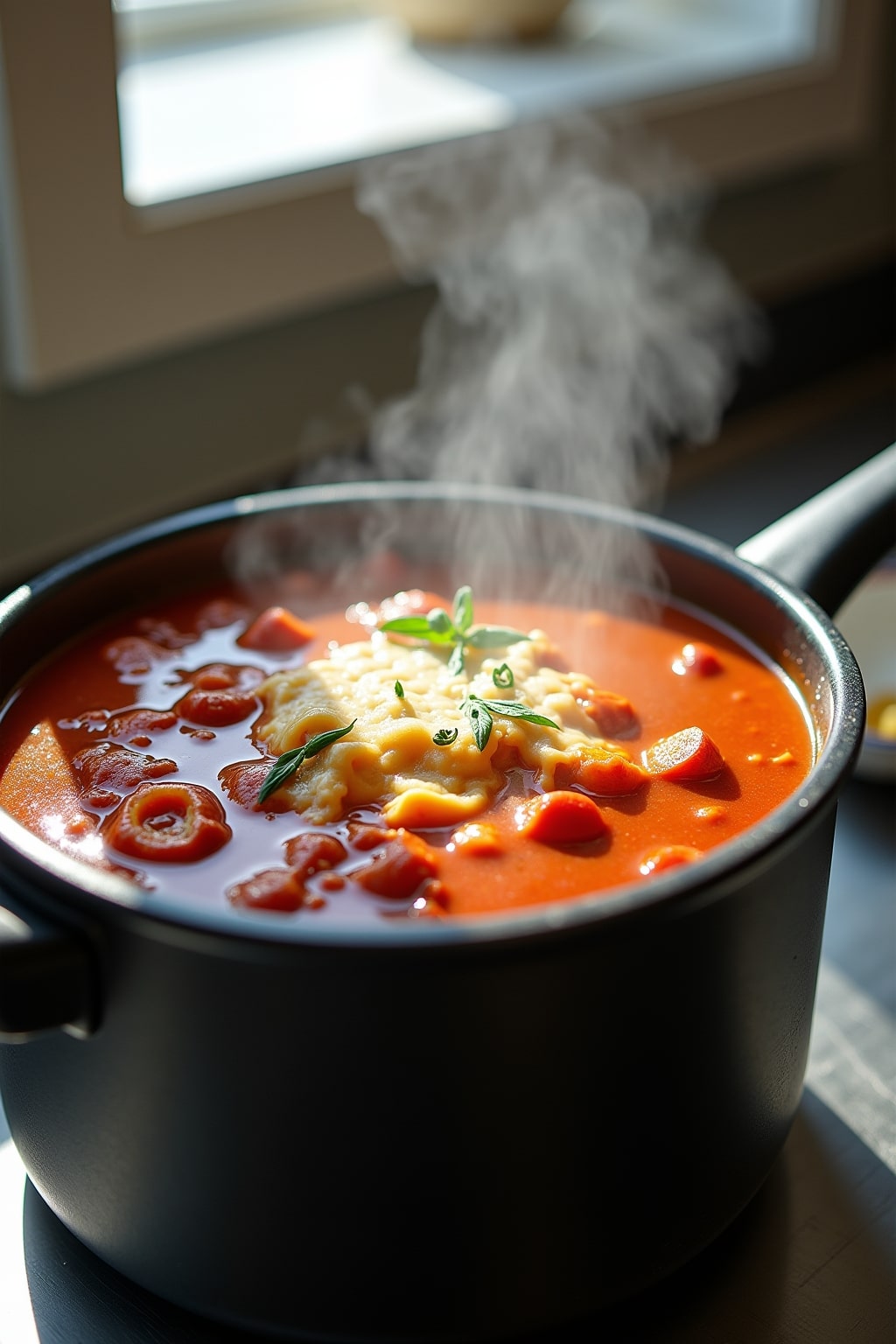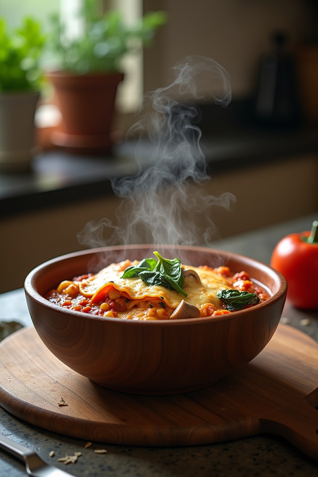 The tantalizing aroma of this vegetarian one pot lasagna soup fills the kitchen as rich tomato broth melds with earthy mushrooms and vibrant spinach. Each spoonful delivers the comforting essence of traditional lasagna without hours of preparation or a sink full of dishes. The umami-packed mushrooms provide a satisfying meatiness that even dedicated carnivores will appreciate, while fresh spinach adds vibrant color and a nutritional boost. Tender lasagna noodles, broken into bite-sized pieces, absorb the flavorful broth and create that quintessential lasagna texture in every spoonful. A generous sprinkle of Italian herbs and garlic infuses the soup with aromatic notes reminiscent of your favorite Italian restaurant. The combination of ricotta, mozzarella, and parmesan cheeses creates delightful pockets of creaminess that balance perfectly with the tangy tomato base. This hearty one-pot wonder transforms a classic comfort food into a convenient weeknight meal without sacrificing any of the traditional lasagna flavors we all crave.