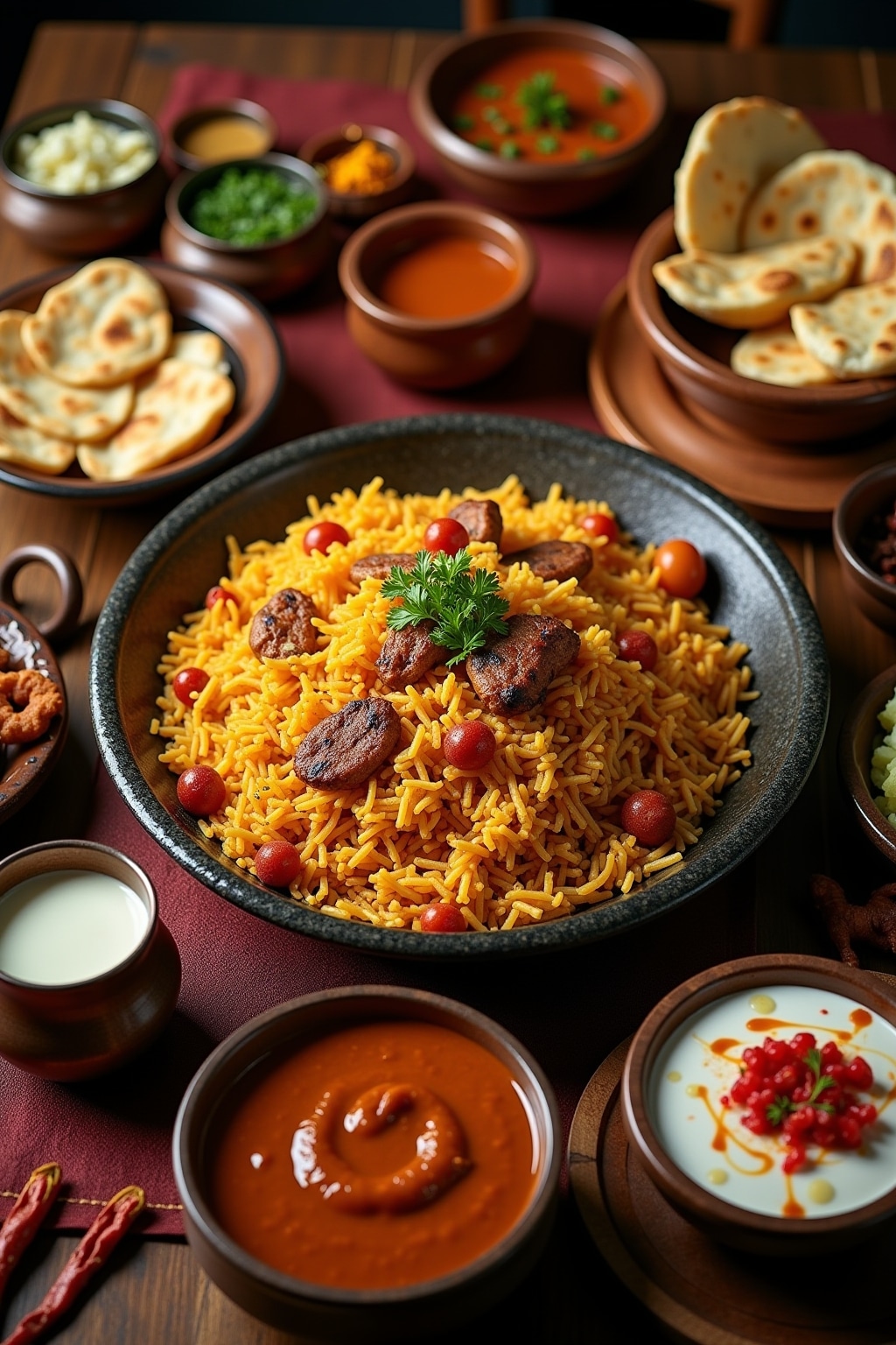 1. Biryani – Fragrant rice layered with marinated meat, aromatic spices, and caramelized onions