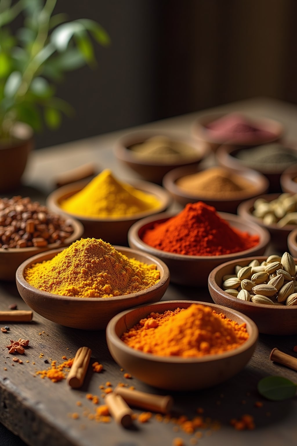 • Aromatic whole and ground spices (cumin, coriander, cardamom, cloves, cinnamon)