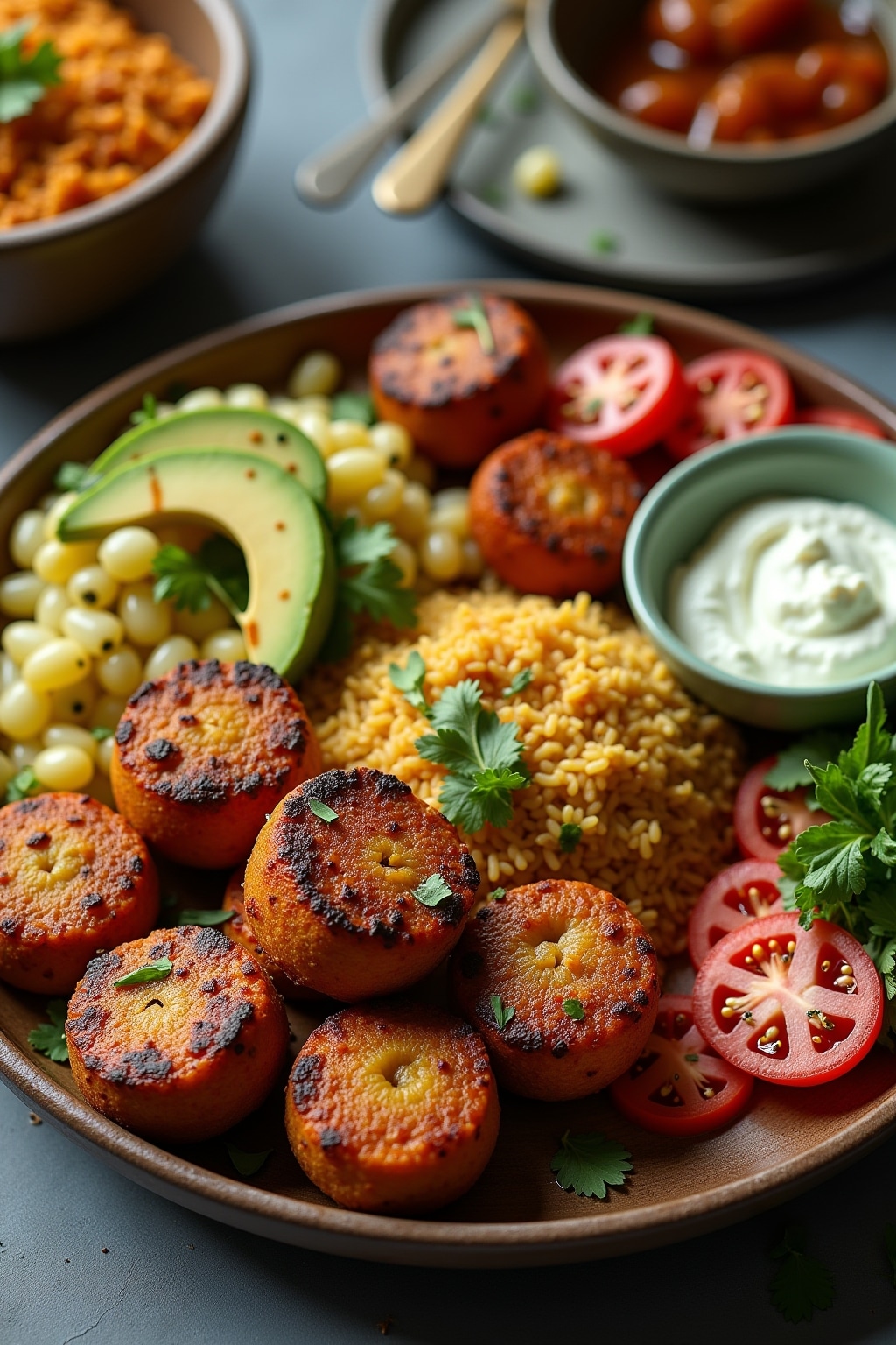 • Lentil-Stuffed Bell Peppers: Spiced daal mixture baked in colorful bell peppers