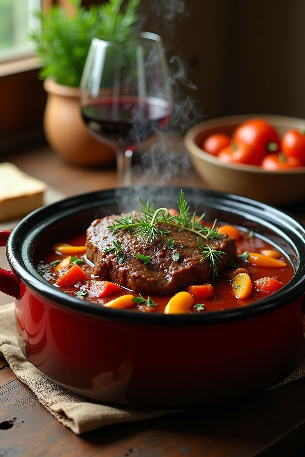Italian Herb Pot Roast Slow Cooker Recipe with Red Wine