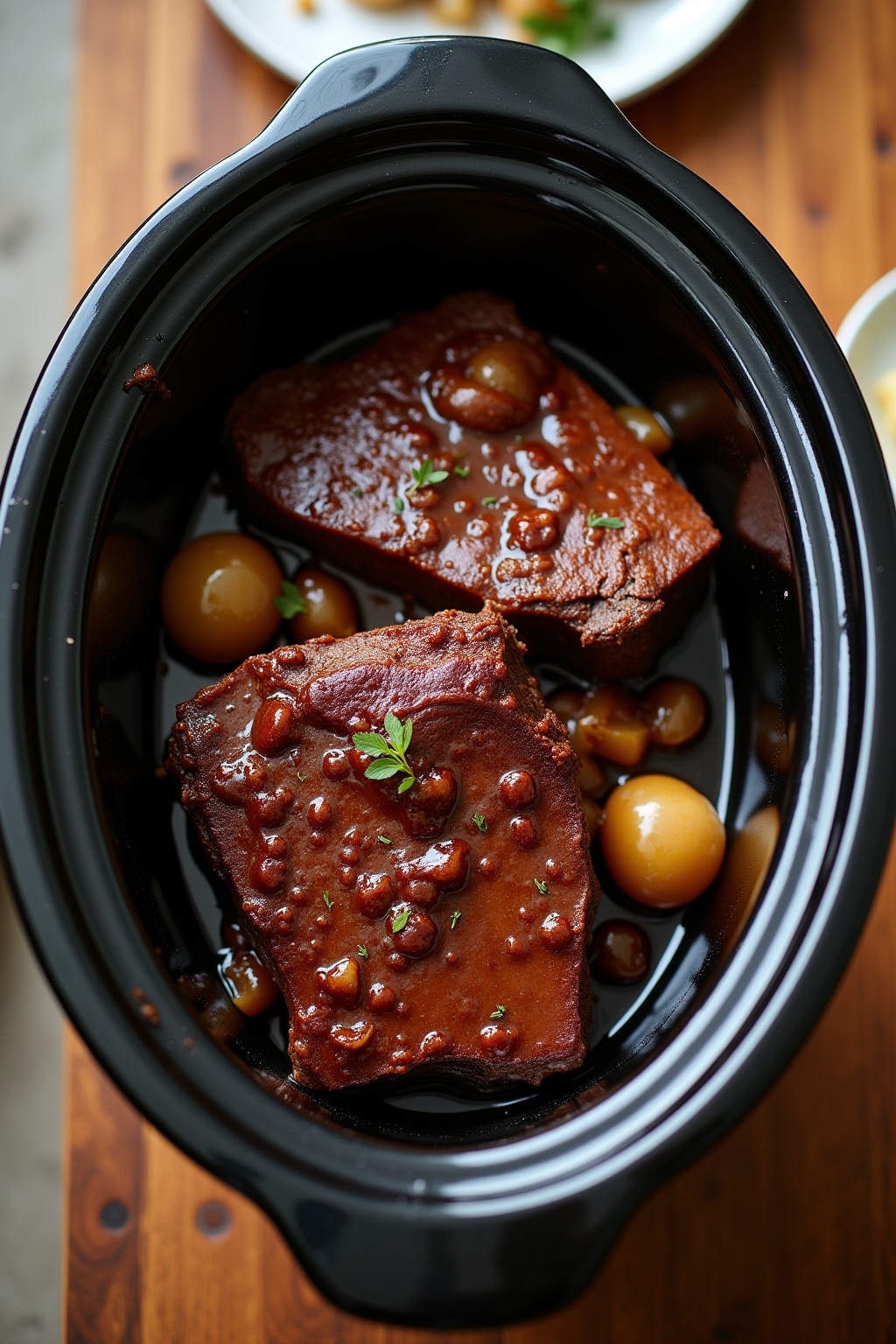Balsamic Glazed Pot Roast Slow Cooker Recipe with Caramelized Onions