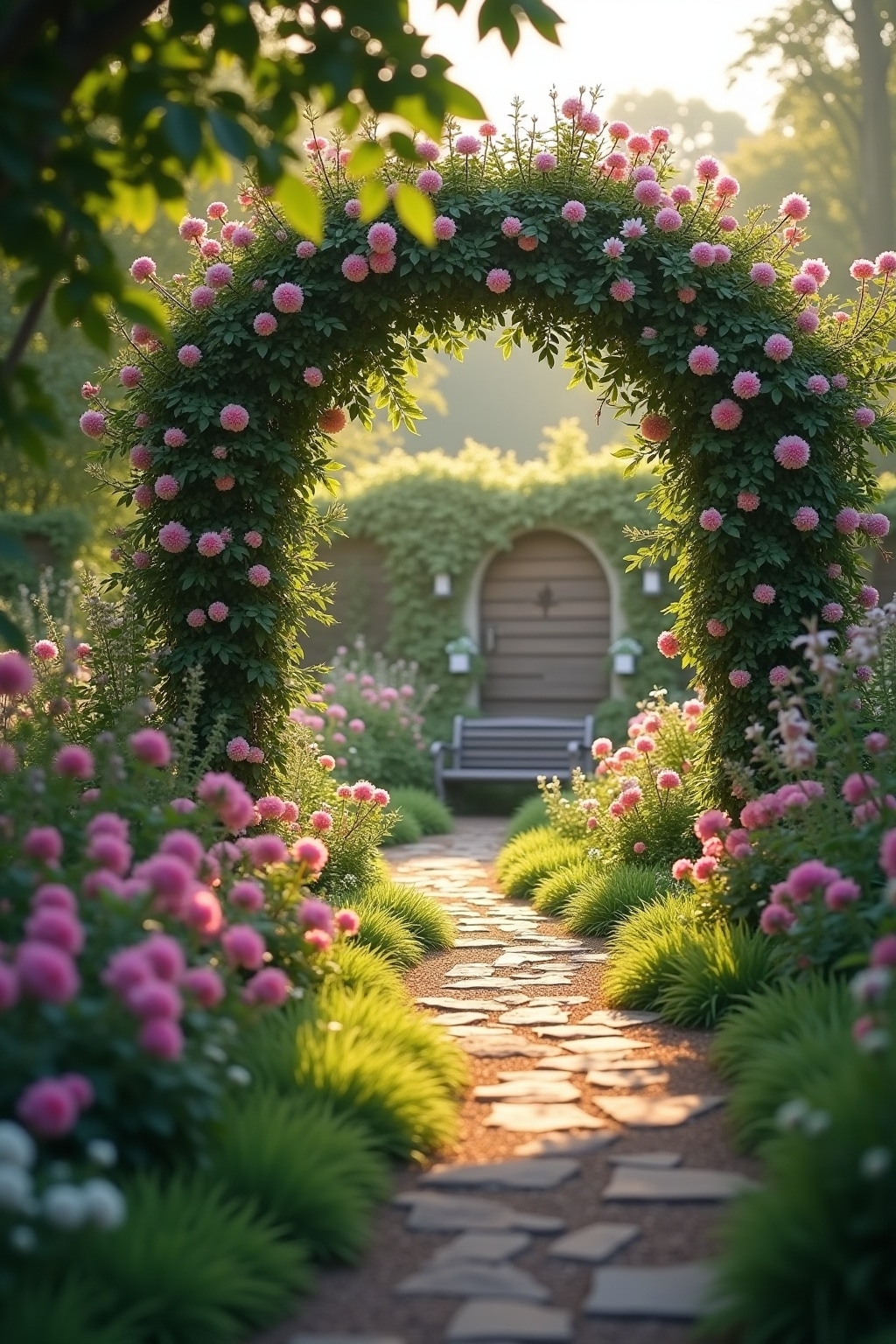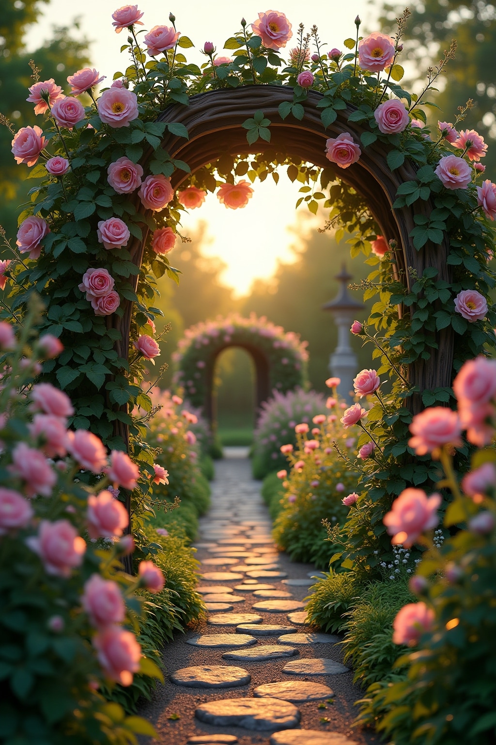 * Romantische Rosenbögen als Durchgänge zu versteckten Gartenbereichen