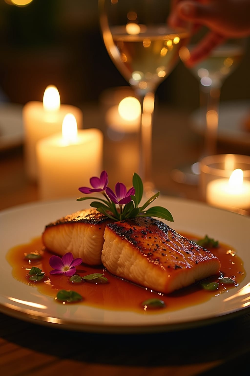 – Miso-Glazed Salmon with Crispy Skin and Wasabi Cream