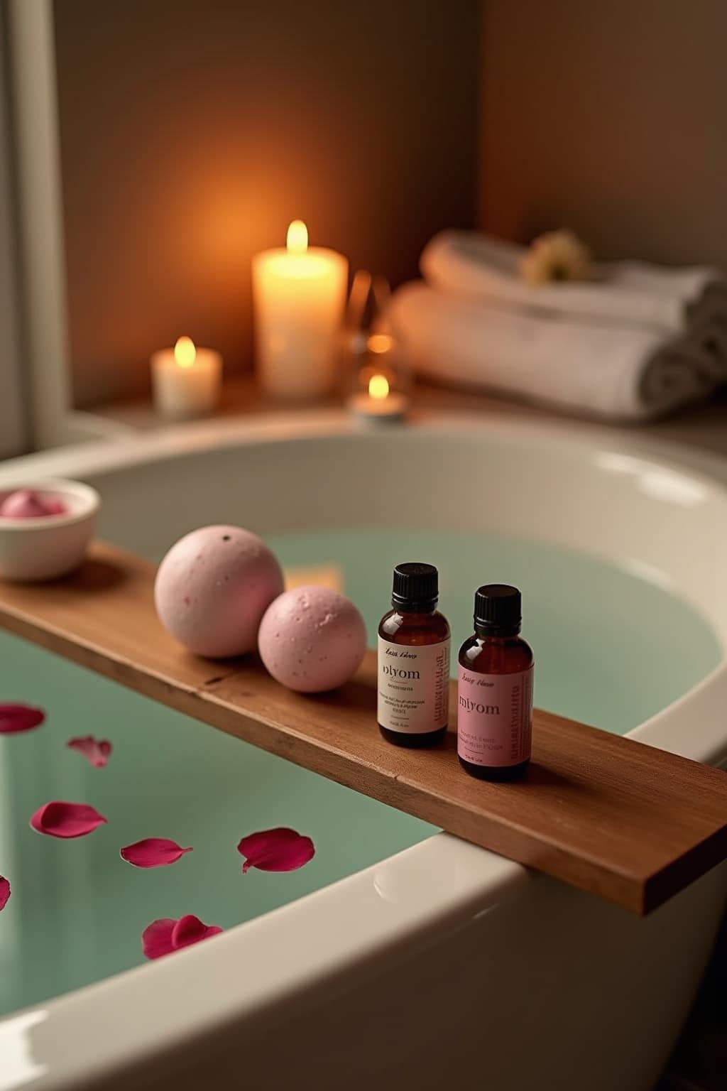 – Platziere Kerzen und Duftspender auf einem Wannentablett in der Mitte der Badewanne