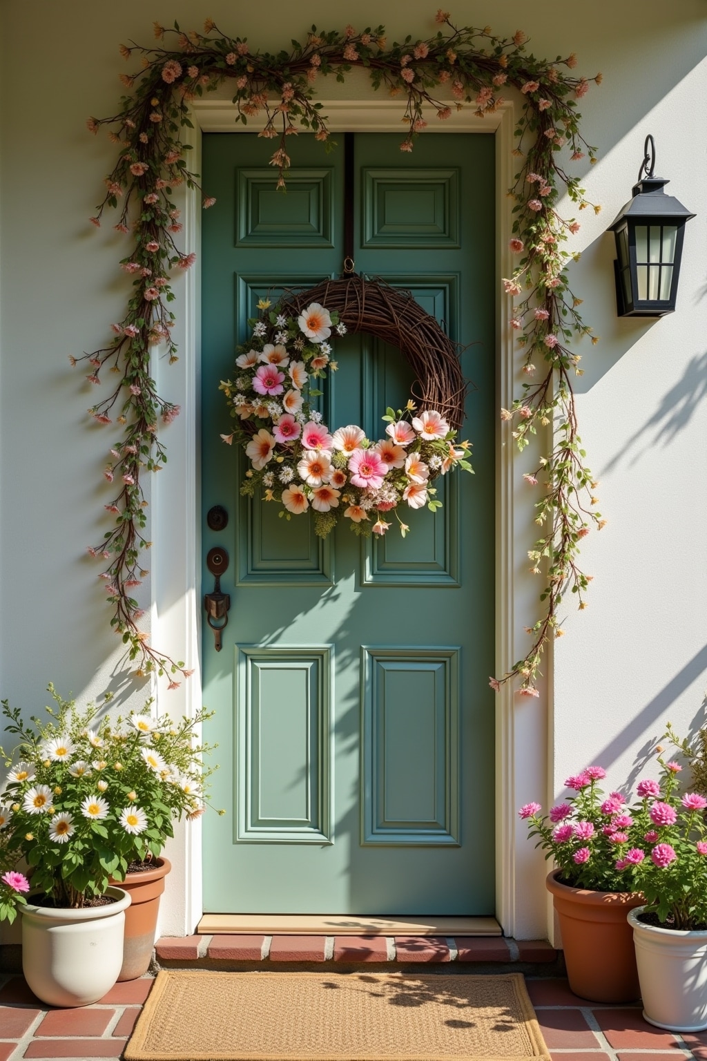 Saisonale Kränze und Girlanden als stilvolle Frühlingsdeko am Hauseingang