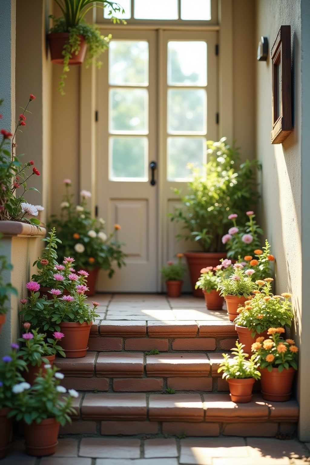 Verwandle Deine Eingangstreppe in ein blühendes Paradies mit kreativen Mini-Gärten und Pflanzarrangements, die jeden Besucher beeindrucken werden. Durch die geschickte Platzierung verschiedener Pflanzgefäße auf unterschiedlichen Höhen erzeugst Du einen dynamischen Look, der Deinem Hauseingang sofort Leben einhaucht. Die Kombination aus blühenden Frühlingsblumen wie Narzissen, Tulpen und Hyazinthen sorgt für ein farbenfrohes Spektakel, das die grauen Wintertage endgültig vertreibt. Besonders effektvoll wirken gestaffelte Arrangements, bei denen Du größere Töpfe unten und kleinere weiter oben platzierst, um eine harmonische Optik zu schaffen. Mit wetterfesten Gefäßen in Pastelltönen oder natürlichen Materialien unterstreichen Du den Frühlingscharakter und schaffst einen stilvollen Rahmen für Deine Pflanzen. Ergänze Deine Pflanzarrangements mit dekorativen Elementen wie kleinen Figuren, Laternen oder Windlichtern, um persönliche Akzente zu setzen. Denke daran, pflegeleichte Pflanzen zu wählen, damit Du lange Freude an Deiner Frühlingsdekoration hast und nicht ständig gießen musst.