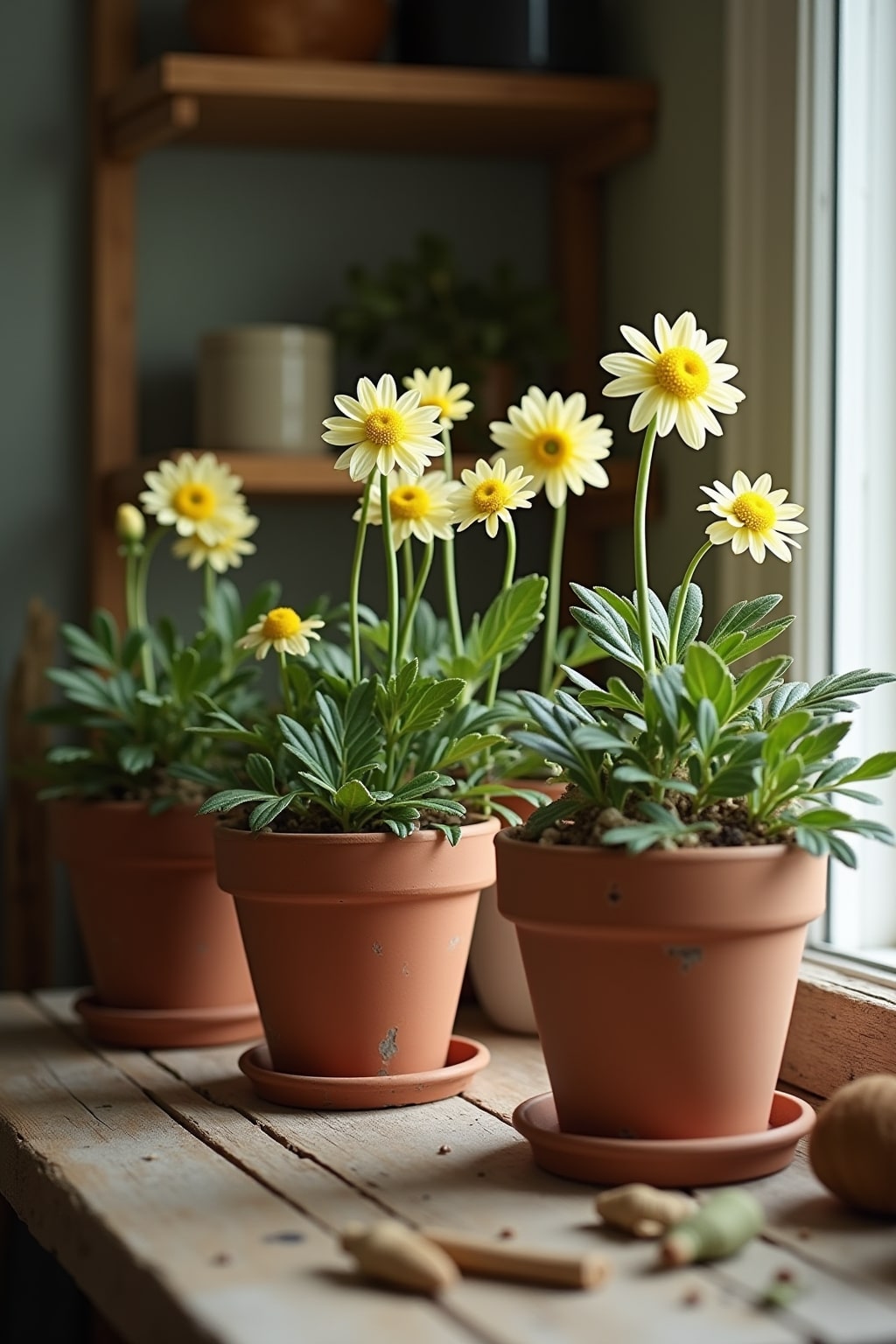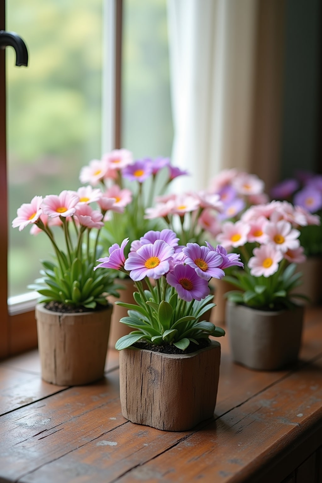 2. Selbstbemalte Tontöpfe mit Primel-Bepflanzung für Fensterbank oder Tisch