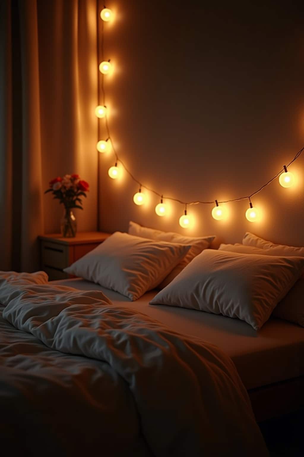 – Stimmungsvolle Beleuchtung durch Nachttischlampen und Lichterketten
