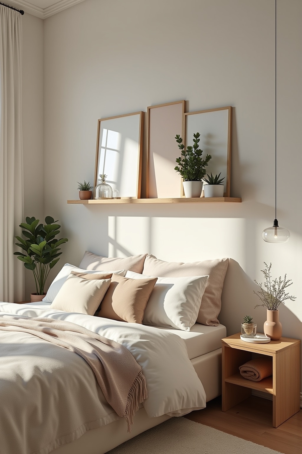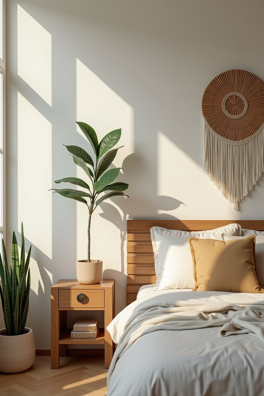 1. Skandinavisch inspirierte Schlafzimmer mit hellen Holzmöbeln und minimalistischer Dekoration