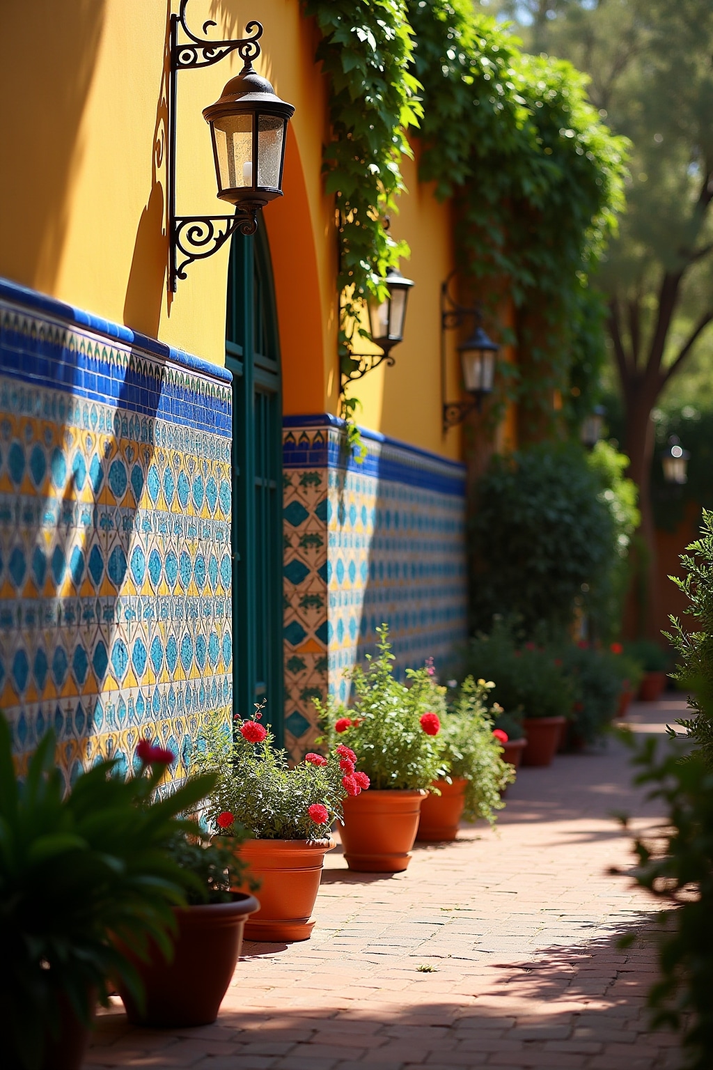 Du kannst deinem Garten einen Hauch andalusisches Flair verleihen, indem du Keramik und Mosaikelemente im Sevilla-Stil integrierst. Die leuchtenden Farben und kunstvollen Muster der spanischen Keramik bringen sofort mediterranes Urlaubsfeeling in deine grüne Oase. Inspiriert von den prächtigen Plätzen und Innenhöfen Sevillas verwandeln handbemalte Keramikfliesen, bunte Töpfe und kunstvolle Mosaikarbeiten deinen Garten in ein südspanisches Paradies. Mit etwas Kreativität kannst du selbst kleine Mosaikprojekte umsetzen oder fertige Elemente geschickt in deine Gartengestaltung einbinden. Die Kombination aus kräftigen Blautönen, sonnigem Gelb und leuchtendem Terrakotta schafft einen authentischen Sevilla-Look, der deinen Garten zum echten Hingucker macht. Besonders beeindruckend wirken großflächige Keramikelemente an Gartenmauern oder als Umrandung für Beete und Wasserspiele. Hier finden sich die charakteristischen geometrischen Muster und Blumenmotive wieder, die auch die berühmten Bauten Sevillas zieren.