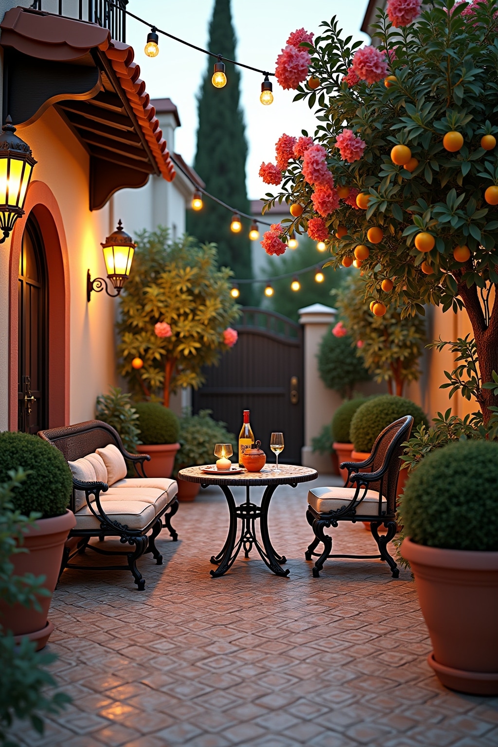 Hier sind zehn wesentliche Elemente für deinen Sevilla-inspirierten Schattenplatz: