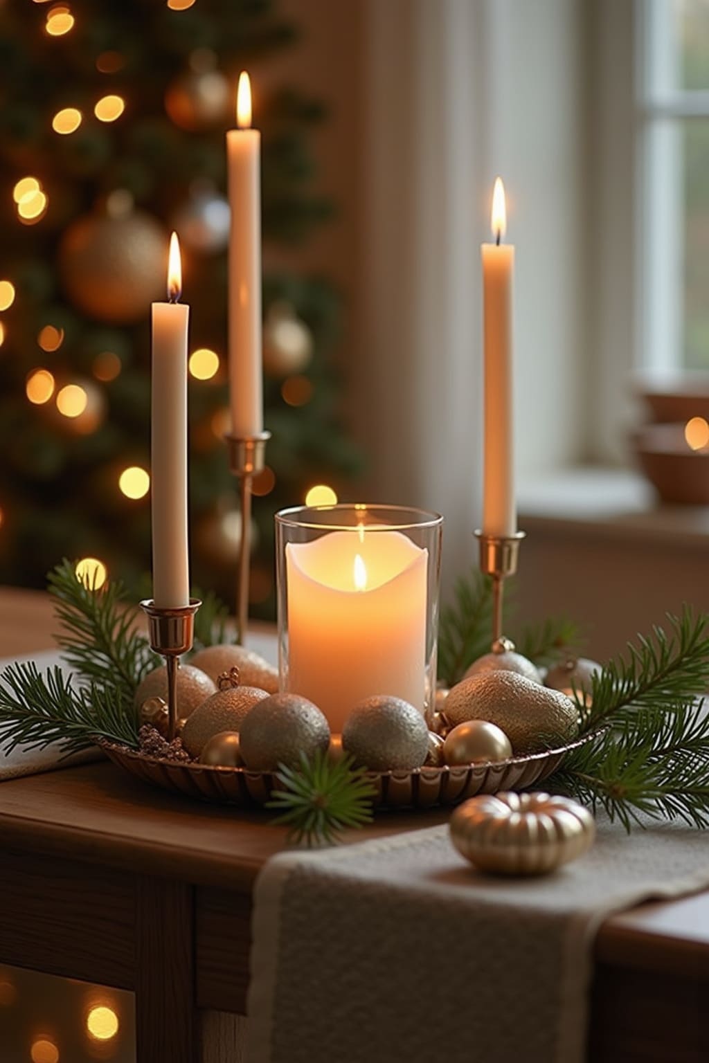 3. Elegante Kerzenständer mit schlanken schwarzen oder metallischen Kerzen