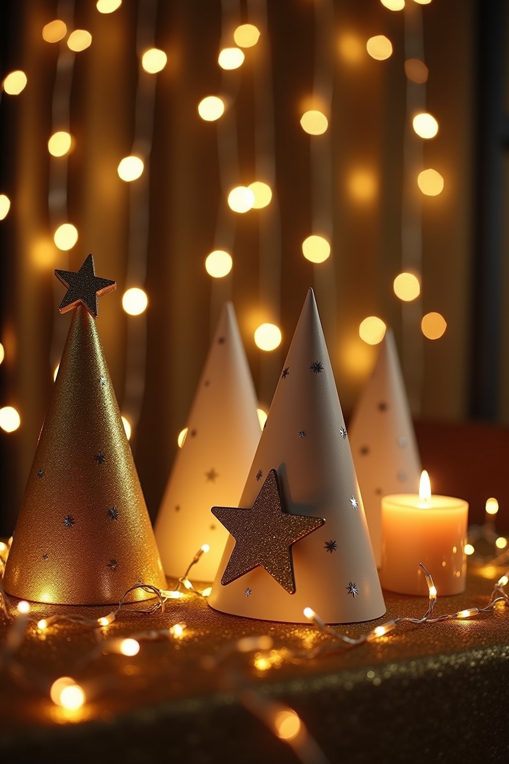 6. Leuchtende Partyhüte mit kleinen Lichterketten