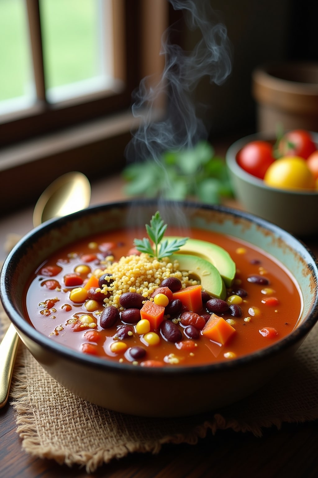 Hearty Three-Bean Slow Cooker Taco Soup with Quinoa