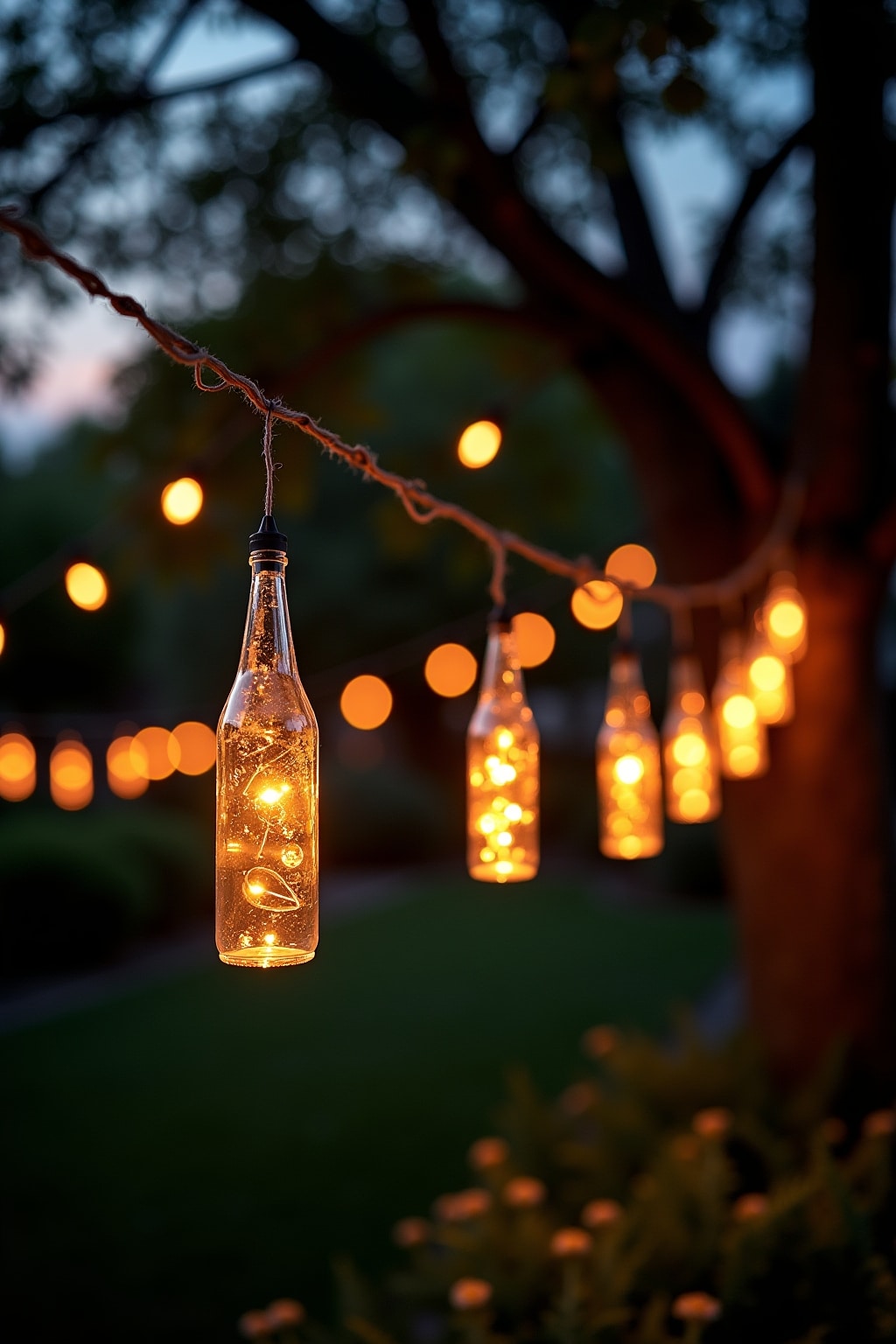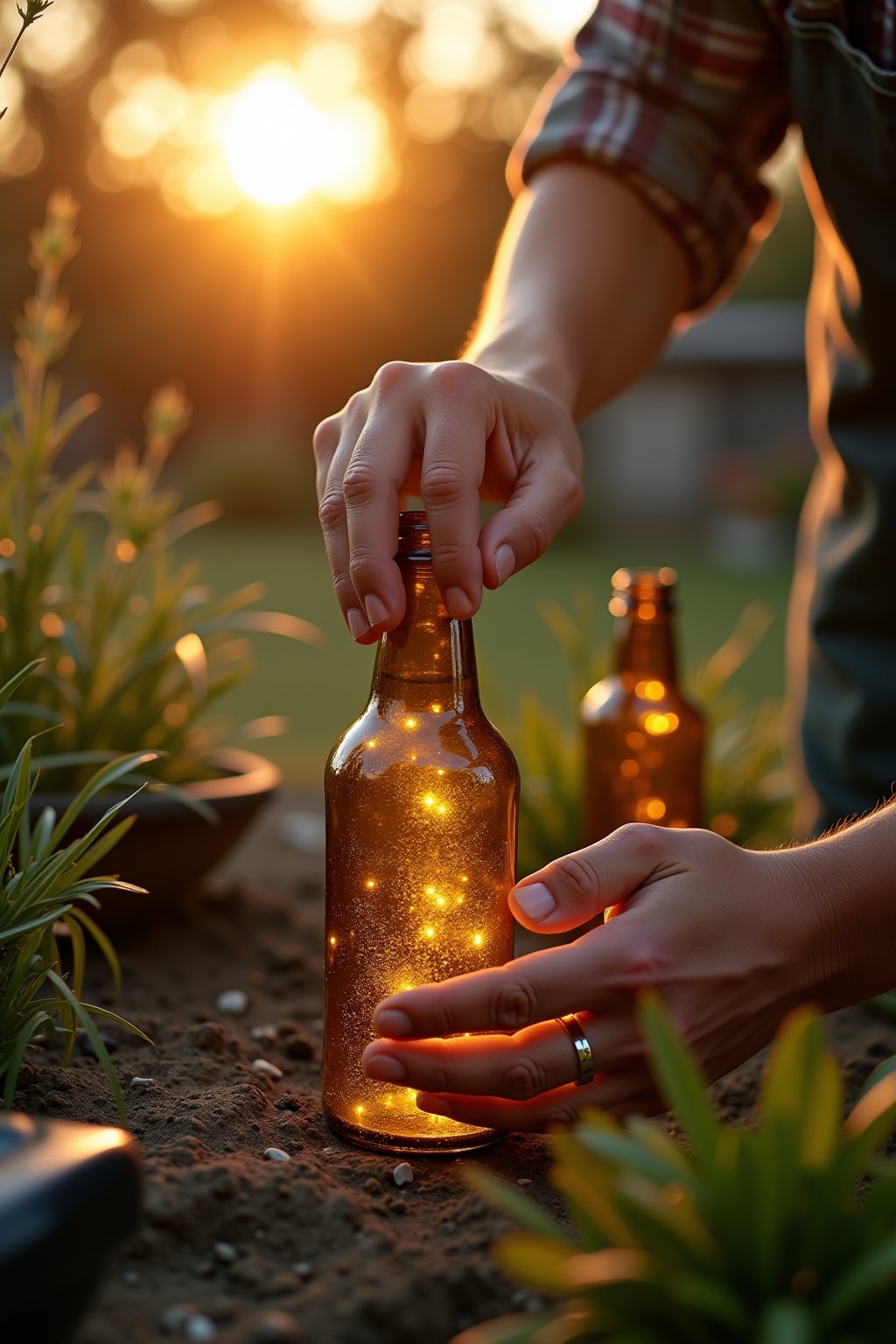 9. Positionieren Sie die fertigen Flaschenlichter strategisch im Garten für den besten Effekt