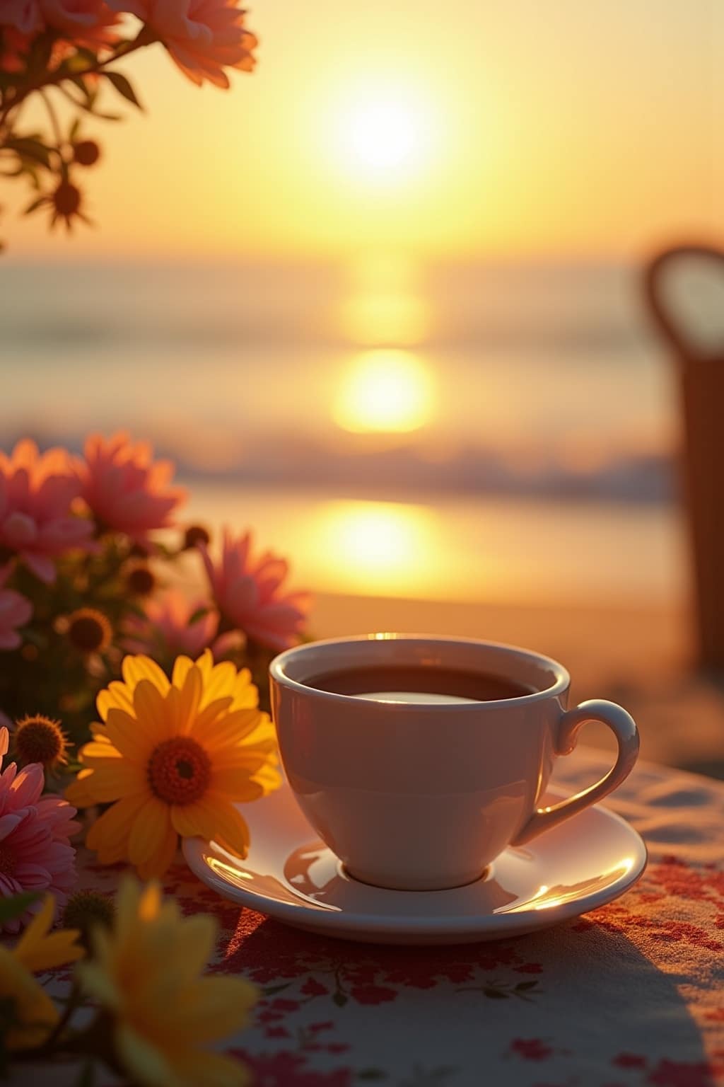 3. Eine Tasse Kaffee oder Tee auf einer sonnenbeschienenen Terrasse