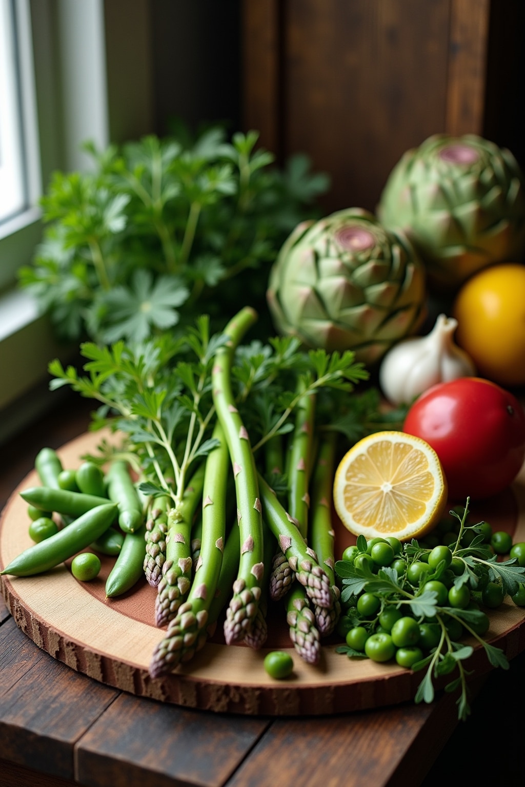 1. Fresh spring vegetables (asparagus, peas, artichokes, radishes, baby carrots)