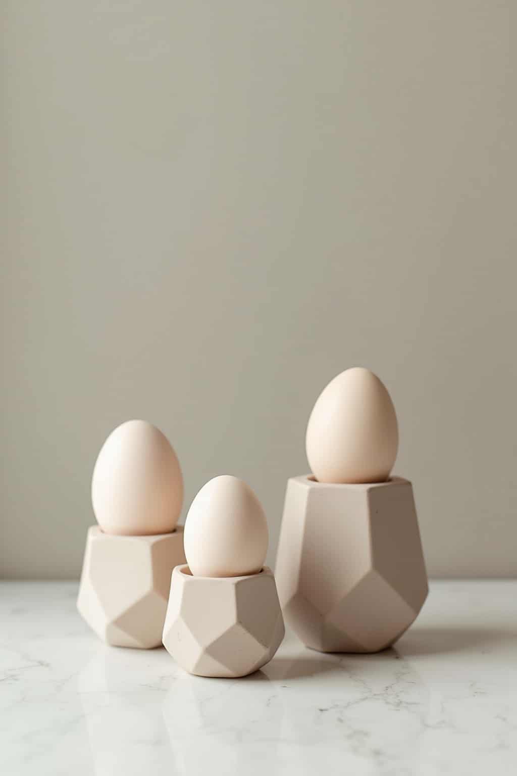 • Geometrische Eierhalter aus gebürstetem Messing oder Beton