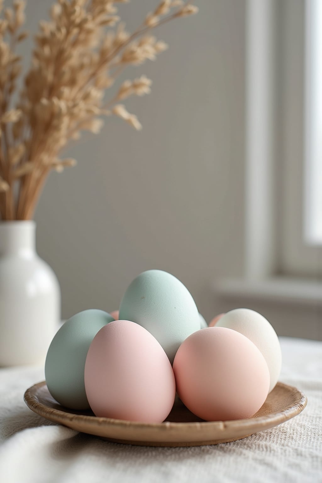 • Matte, einfarbige Ostereier in Erdtönen oder gedämpften Pastellfarben