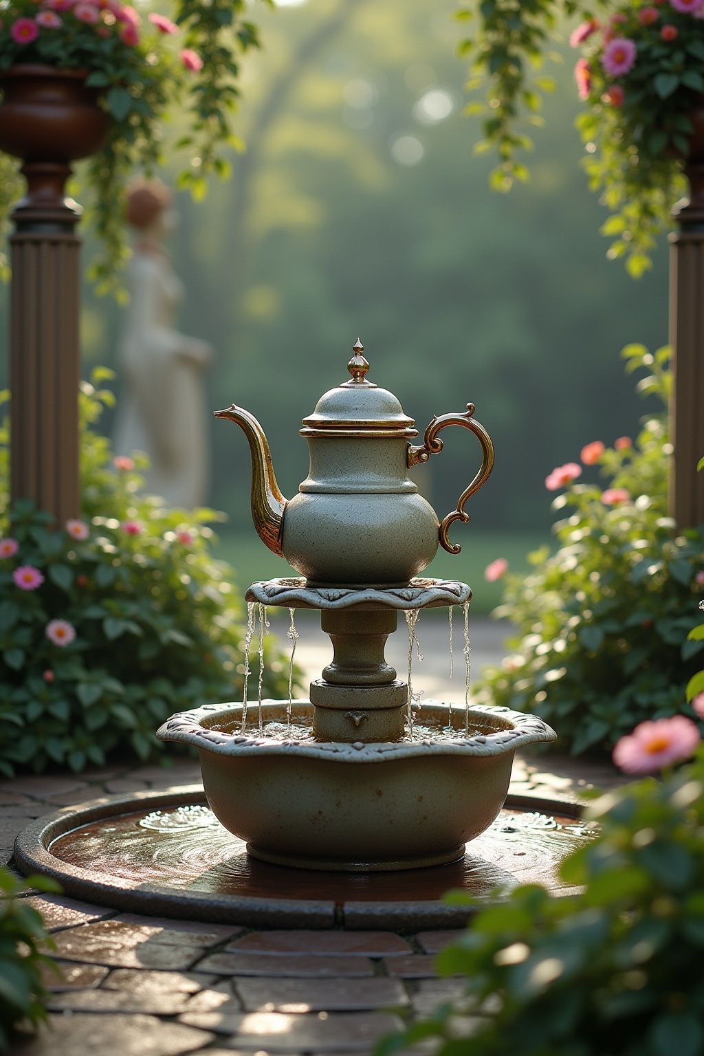 6. Mehrere gestapelte Teekannen als Kaskaden-Brunnen für opulente Barockgärten