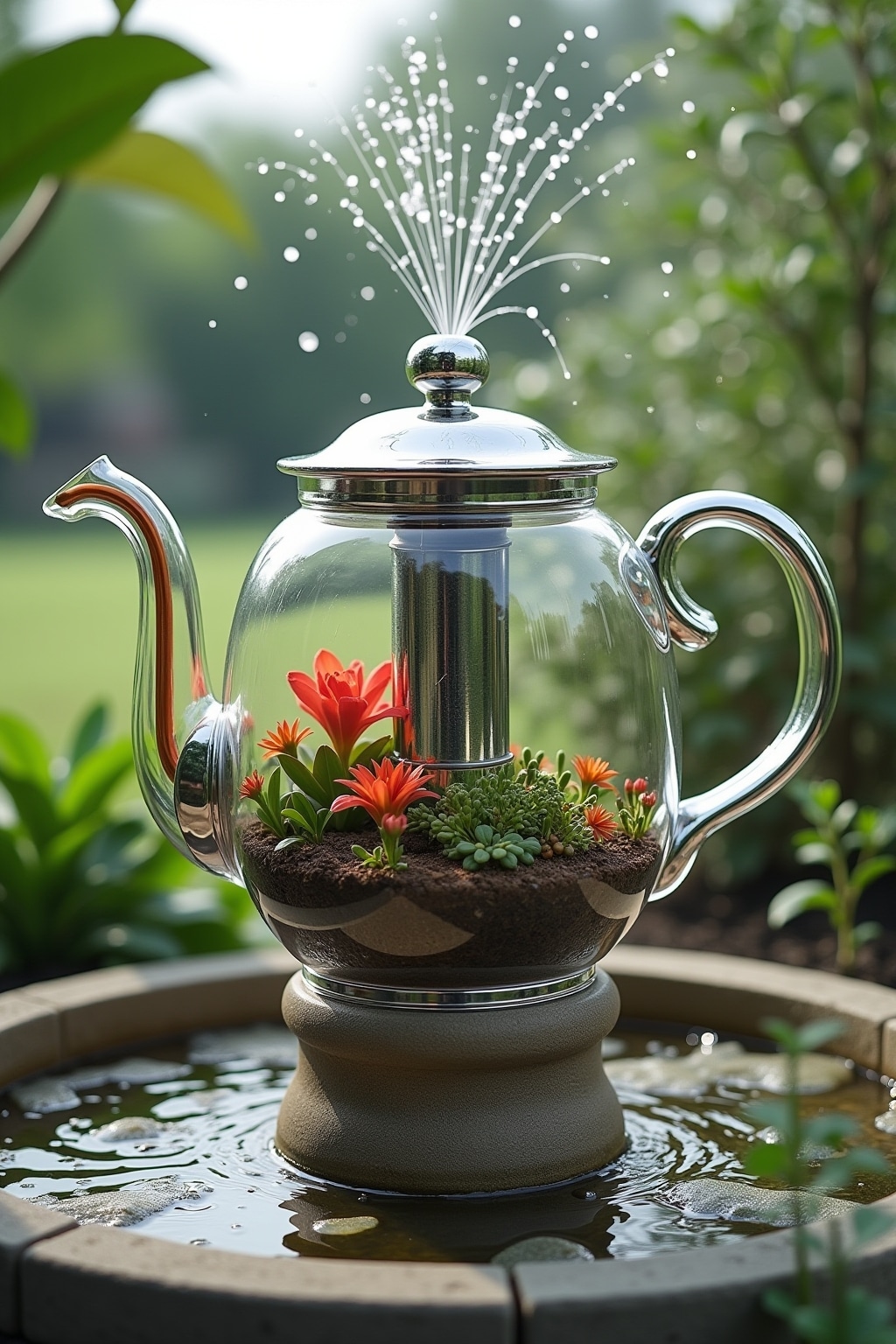 3. Schwebende Teekanne mit unsichtbarer Wasserzuführung für moderne Gärten