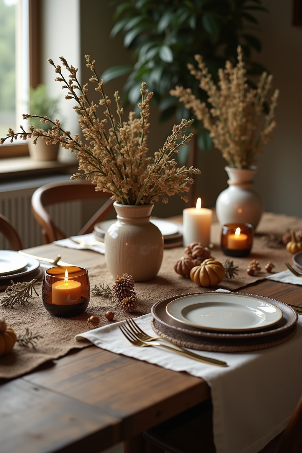 5. Natürliche Materialien wie Leinen-Tischläufer in neutralen Farben