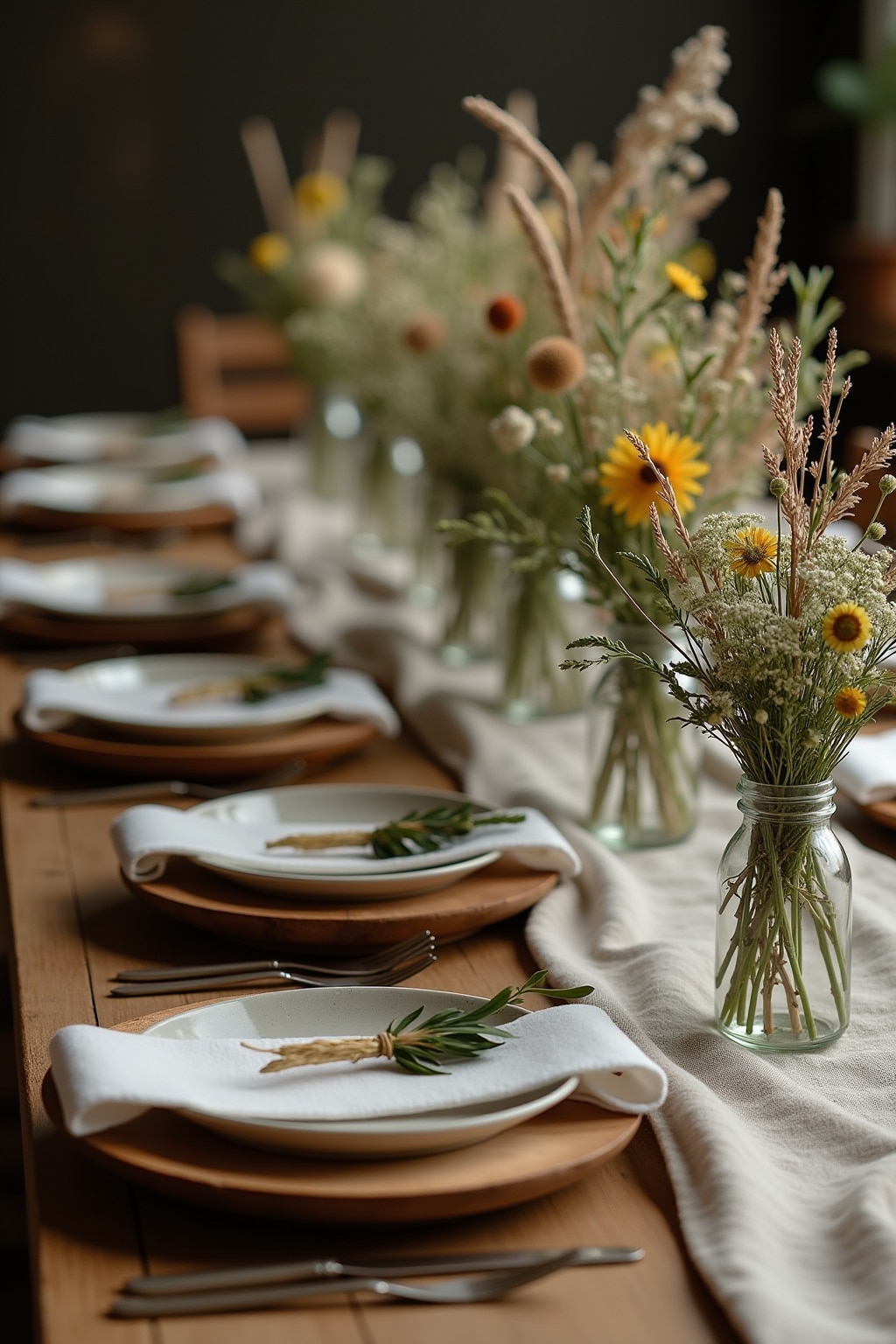 6. Rustikale Landhaus-Tischdeko mit Leinen, Jute und Wildblumen