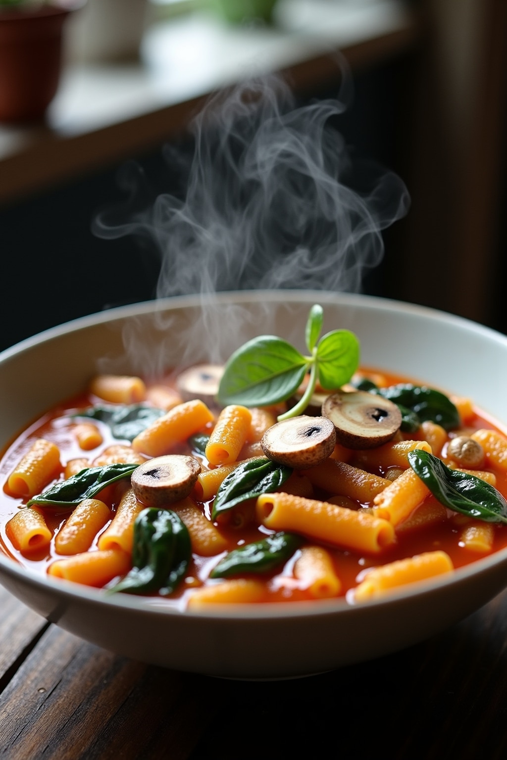 One-Pot Vegan White Lasagna Soup with Mushrooms and Spinach