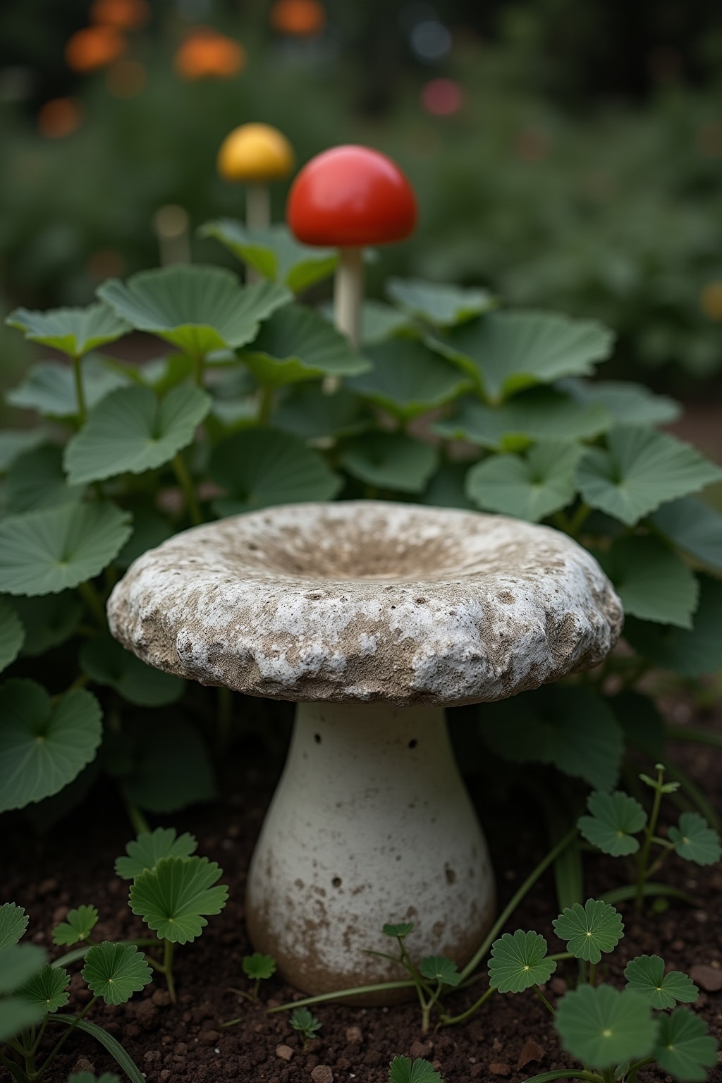 ## Kombinationsmöglichkeiten: Vintage Beton Pilz Hocker mit anderen Gartenelementen