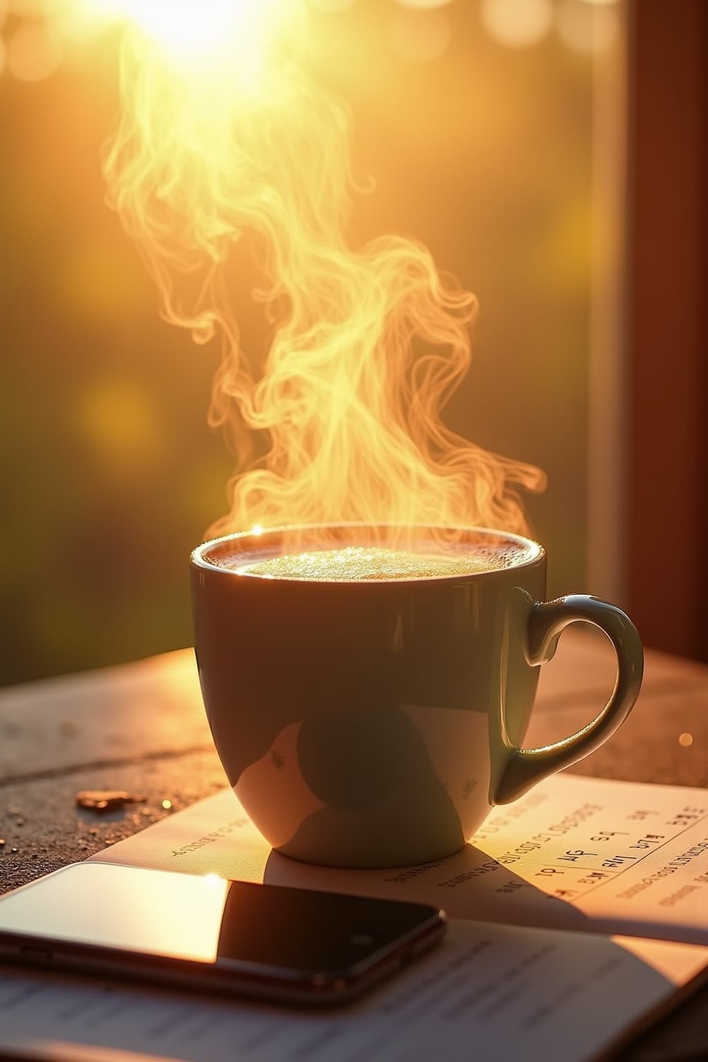 2. Dampfende Kaffee- oder Teetassen mit einem „Guten Morgen“-Text