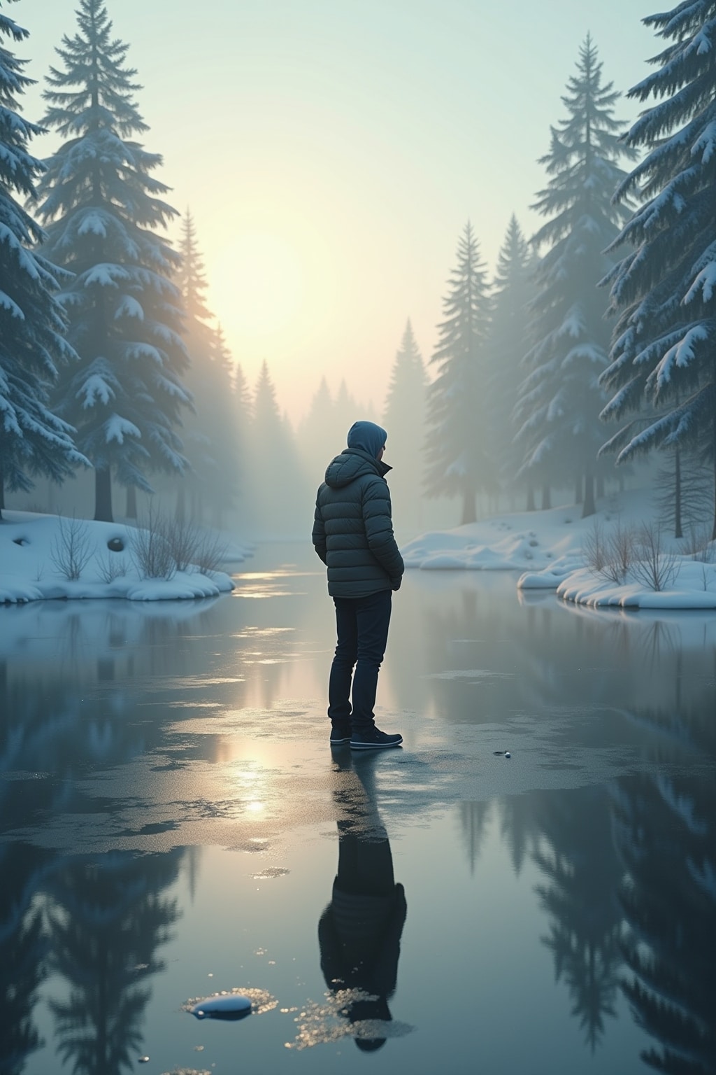 13. „Der gefrorene See spiegelt den Himmel – so wie unsere Ruhe die Tiefe unserer Gedanken.“