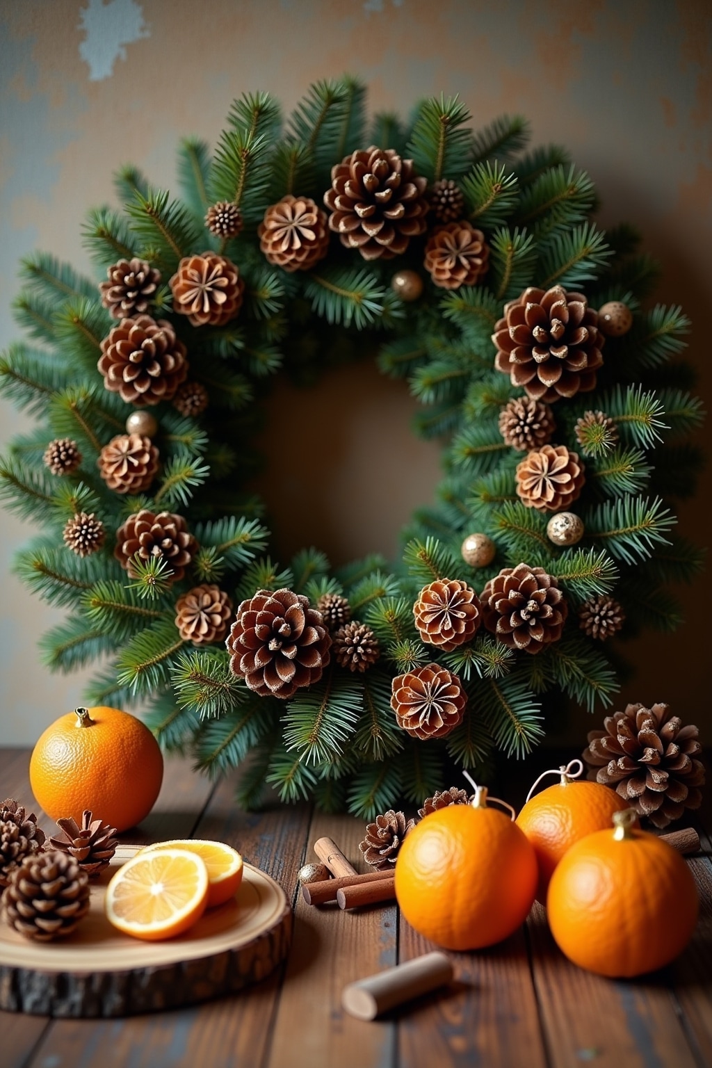 8. Natürliche Kränze aus Eukalyptus, weißen Beeren und Tannenzapfen für Türen und Wände kreieren