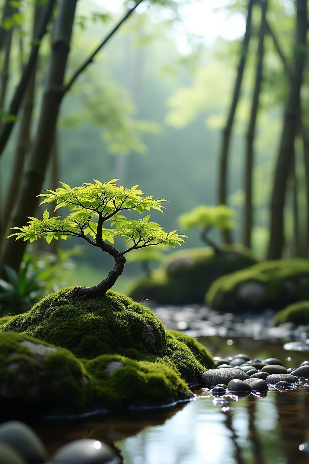 – Wähle einen einzigen, kleinen Bonsai als Fokuspunkt